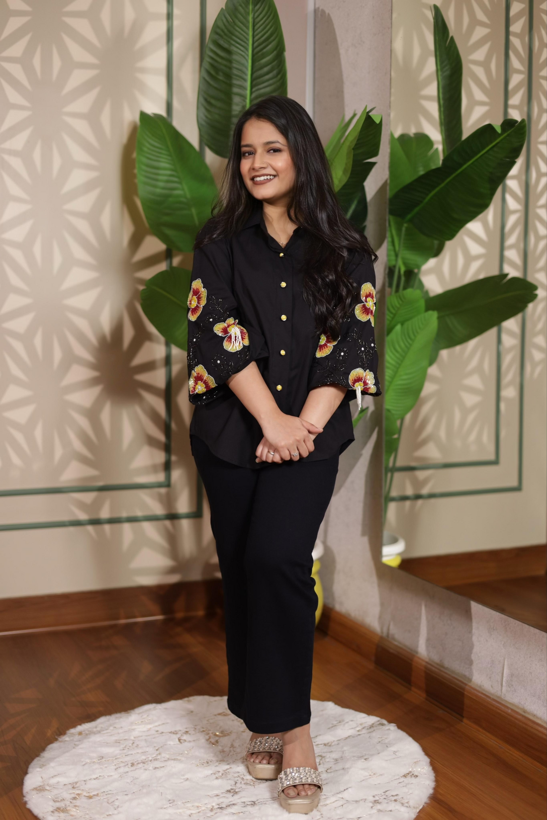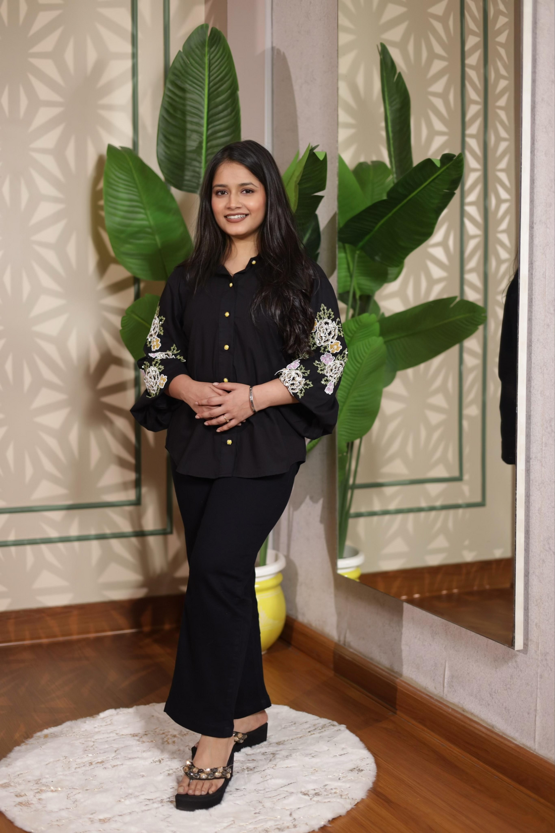Description: Striking and graceful, this black co-ord set captures the essence of modern festive luxury....