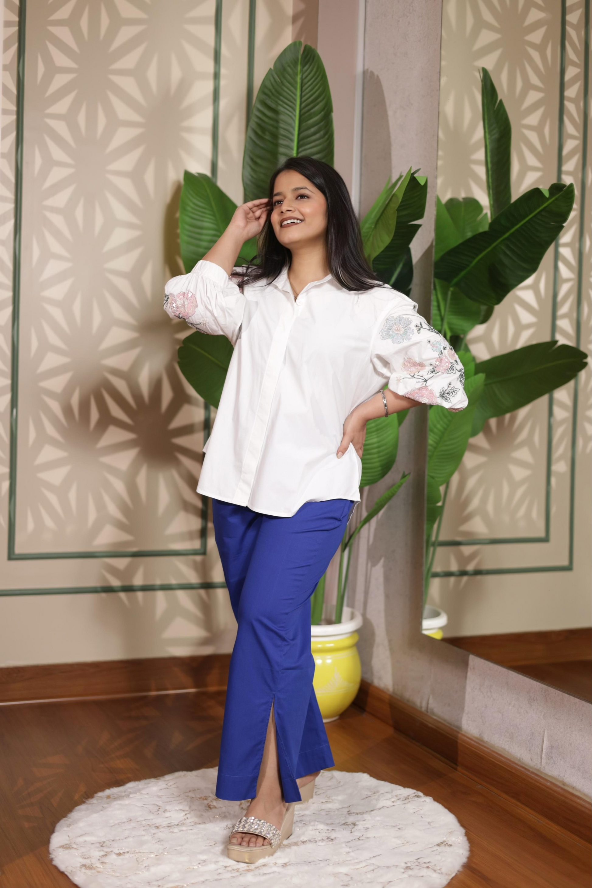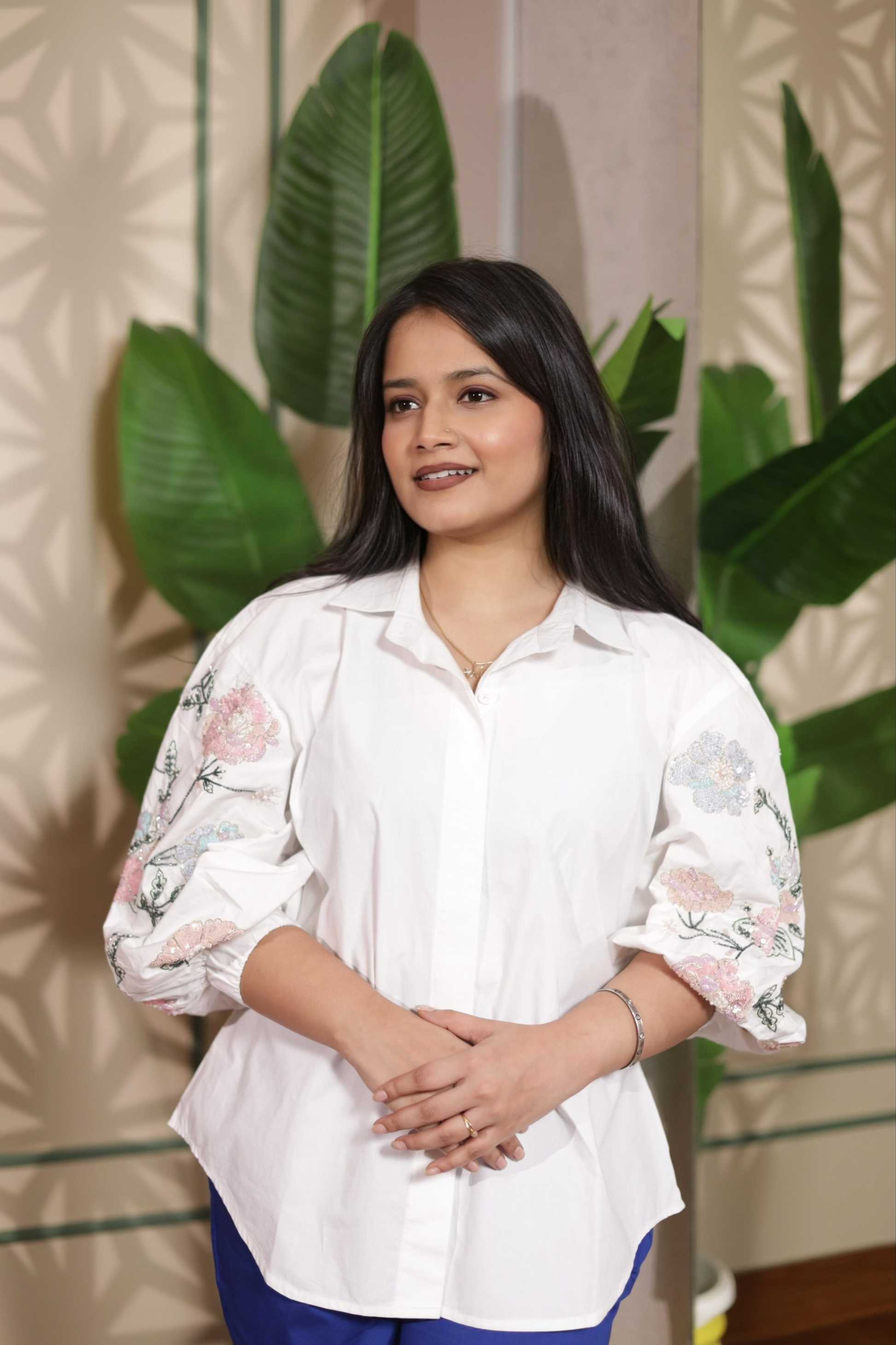 - Pastel Pink & Blue Floral Embroidery on Sleeves